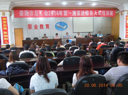 2014年6月20日上午9點,由婁底湘運職業(yè)技術(shù)培訓學校承辦,婁底市總工會主辦的2014年第一期家政服務員培訓班在湘運職業(yè)技術(shù)培訓學校五樓教室隆重舉行開班儀式,市總工會黨組成員、工會副主席譚紅衛(wèi),婁底湘運公司董事、副總經(jīng)理兼工會主席謝克明等有關(guān)領導出席開班儀式。